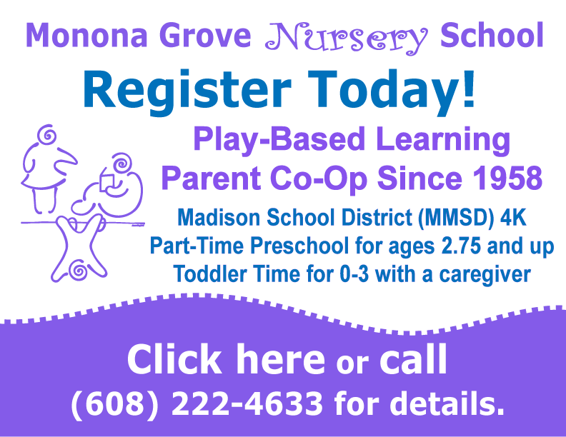 Enrollment for the 2026-2027 school year at Monona Grove Nursery School is happening right now! Explore our website to learn about our Play-Based Learning then register today! It’s as easy as 1, 2, 3!